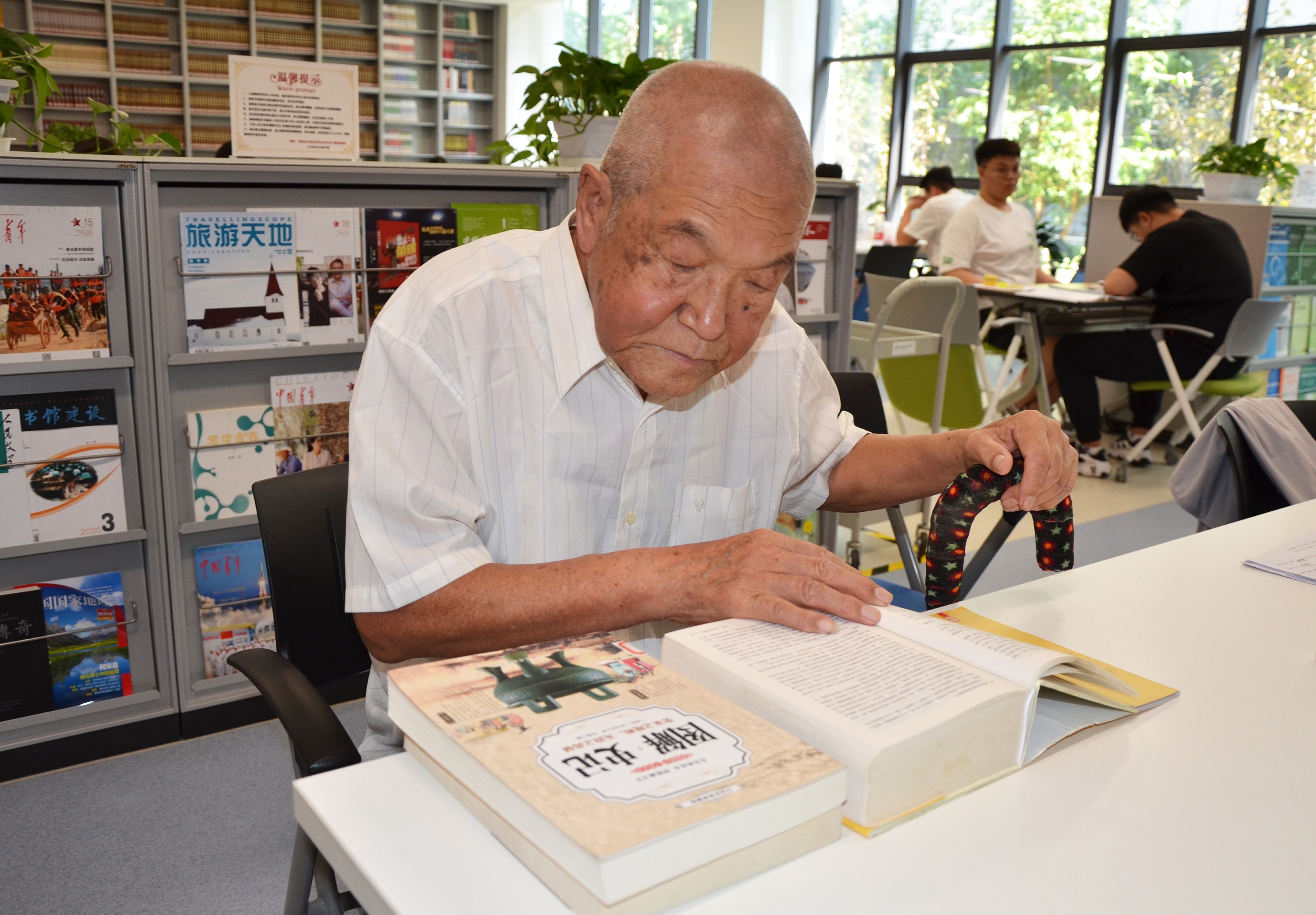 您在市立圖書館里,有時(shí)候就能看到一位耄耋老人,銀發(fā)胡須,拄著拐杖,背著書包,蹣跚而至,穿行在熙熙攘攘的讀者之間。他就是市立圖書館年紀(jì)最大的讀者王國(guó)權(quán)。