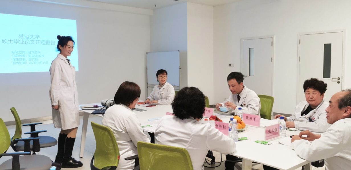 張?zhí)戽?zhèn)院長(zhǎng)兼任藥學(xué)部主任,同時(shí)也是延邊大學(xué)藥學(xué)專業(yè)碩士生導(dǎo)師,他的學(xué)生張文鈺于2019年9月入學(xué),在延邊大學(xué)完成1年的理論課程學(xué)習(xí)后,來到我院開始為期2年的校外實(shí)踐階段的學(xué)習(xí)。