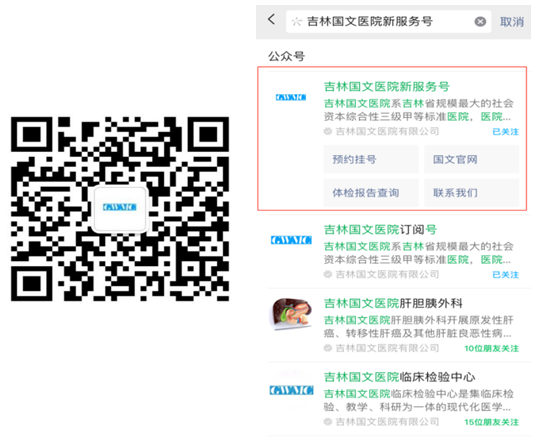 或者通過微信搜索“吉林國文醫(yī)院新服務(wù)號”進(jìn)行關(guān)注