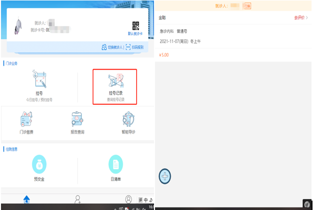 返回到功能菜單界面,點(diǎn)擊【掛號記錄】,可以查詢到以往的掛號記錄。
