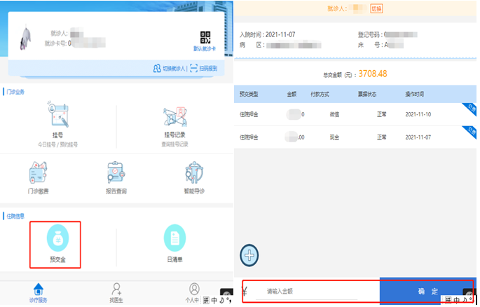 住院信息(預(yù)交金、日清單)