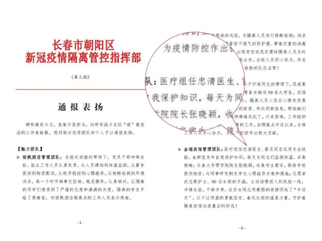 3月31日,長春市朝陽區(qū)新冠疫情隔離管控指揮部對疫情防控工作中表現(xiàn)優(yōu)秀的集體和個人(第三期)予以通報表揚(yáng)。國文醫(yī)療集團(tuán)(長春院區(qū))產(chǎn)科醫(yī)生任忠清作為優(yōu)秀個人被通報表揚(yáng)。