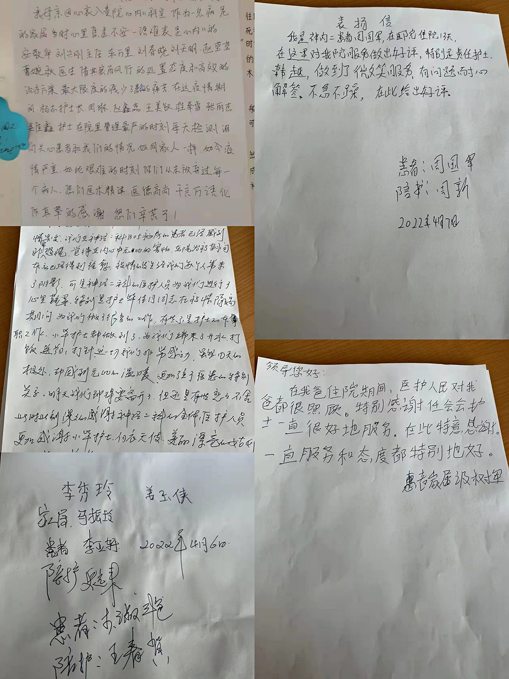 由于大部分人員抽調(diào)一線,期間的辛苦不言而喻,幸運的是,我們這場沒有硝煙的戰(zhàn)爭,在醫(yī)護人員與患者共同的努力下,取得了非常明顯的成果。除了辛苦,其中涌現(xiàn)了讓我們更為感動的瞬間,患者的感謝信一封接著一封,暖心的舉動一件接著一件,疫情雖苦,愛卻甜了國文所有就診人員和醫(yī)護人員的心。