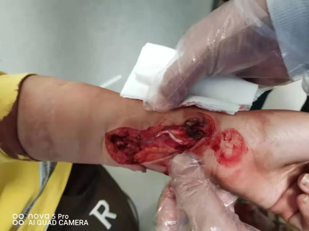 4月19日中午,急促的電話鈴聲響徹在急診室,電話的另一端傳來(lái)急切的語(yǔ)氣:一位12歲的小女孩,不小心被玻璃劃破了手臂,傷口深至肌腱,需要馬上進(jìn)行診治!急診救護(hù)車(chē)第一時(shí)間前往患者家中并同時(shí)聯(lián)系了骨科主任,骨科呂國(guó)福主任接到電話后,立即帶領(lǐng)骨科團(tuán)隊(duì),嚴(yán)格按照院感防控措施做好防護(hù),到達(dá)急診做好接診準(zhǔn)備。