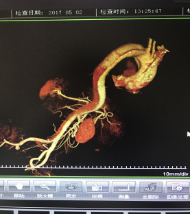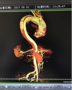 5月2號劉大伯照常早起干活,突然胸部劇烈疼痛,難以忍受,全身大汗,同時伴有右上肢發(fā)涼,他心想這次心絞痛比之前嚴(yán)重的多啊,趕緊叫上孩子到吉林國文醫(yī)院心血管內(nèi)科住院,患者長期高血壓病史,血壓一直控制不理想,大夫給他做了檢查,測左上肢血壓:82/45mmHg,右上肢血壓測不出,心率52次/分,右側(cè)肱動脈、尺動脈、橈動脈搏動消失,左側(cè)股動脈搏動較右側(cè)弱?!霸懔耍p側(cè)血壓差別這么大,是不是主動脈夾層了?”,接診大夫趕緊找來李主任,李主任反復(fù)詢問患者病情,表情突然凝重起來,患者胸痛這么明顯,血壓低的厲害,主動脈夾層的可能性很大。二話不說,李主任立即聯(lián)系影像科的醫(yī)生準(zhǔn)備做主動脈CTA,移動患者做檢查的過程大夫們非常小心,嚴(yán)密監(jiān)測患者血壓變化情況。兩個小時后結(jié)果出來了,主動脈夾層從升主動脈一直撕裂到左側(cè)髂總動脈?。?!