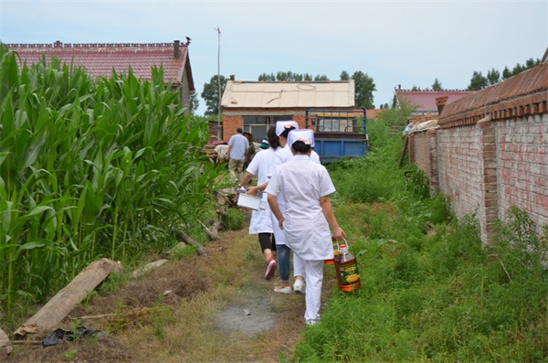 2016年7月13日,吉林國文醫(yī)院精準(zhǔn)扶貧醫(yī)療隊(duì)一行10人來到大榆樹老柜村,為該村14戶幫扶家庭送來生活用品及免費(fèi)檢查。