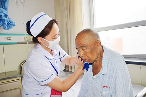 4月17日,吉林國文醫(yī)院外二科收治一名前列腺增生和睪丸炎、腦血栓后遺癥老年五保戶病人,生活不能自理。病人入院時(shí),穿的衣服上非常臟而且有異味,暴露在外面的皮膚布滿污垢,護(hù)士長王丹帶領(lǐng)護(hù)士張慧慧給老人洗頭、洗腳、擦洗皮膚并且把老人的臟衣服洗得干干凈凈。