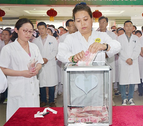 秋風(fēng)煞爽,當(dāng)一切都那樣的自然平靜,一場災(zāi)難卻降臨到一個(gè)柔弱的女生身上,他就是血液腫瘤科患者常智清。于2010年前正值大學(xué)美好生活時(shí),她由于牙齦出血,乏力,發(fā)現(xiàn)貧血,后就診于吉大二院,行骨髓穿刺后診斷為再生障礙性貧血,她是單親家庭,只有一位相依為命的母親常年陪伴在左右,由于經(jīng)濟(jì)原因,僅給予輸血、止血等相關(guān)支持對(duì)癥治療維持生命?,F(xiàn)患者已無力支付血費(fèi)及醫(yī)藥費(fèi)。在了解情況后,我院員工為滿足患者常智清對(duì)生命的憧憬與渴望,激起她對(duì)生活的熱情與希望,為生命貢獻(xiàn)自己的一份力量,于今年10月14日國文醫(yī)院員工自發(fā)為貧困患者常智清捐款行動(dòng),截止到10月18日,已接收到全院十幾個(gè)科室捐款近7000余元,將全部用于患者的治療。