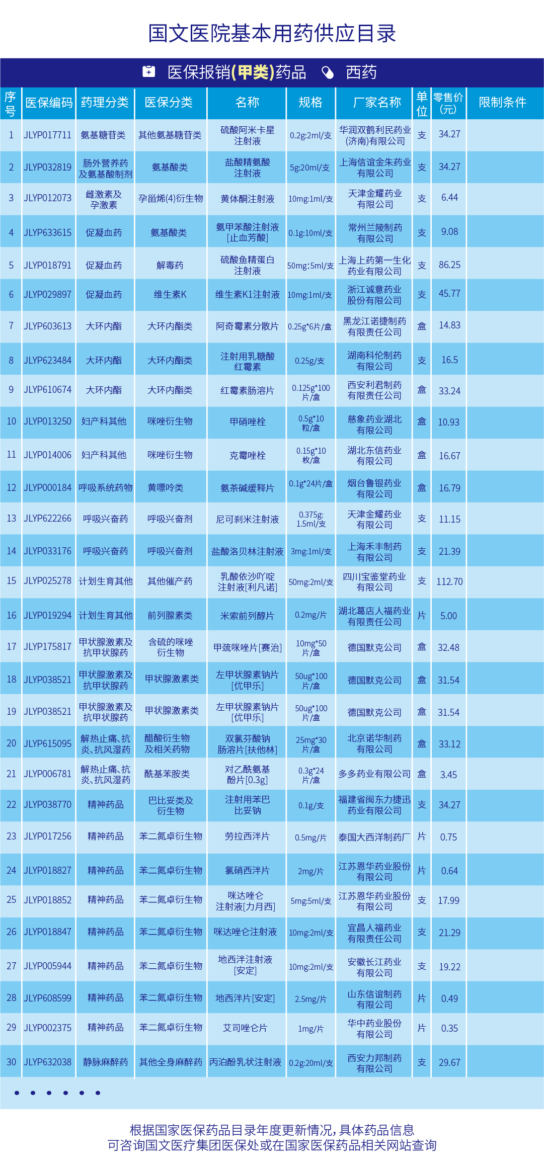 2021年吉林國(guó)文醫(yī)院基本用藥供應(yīng)目錄