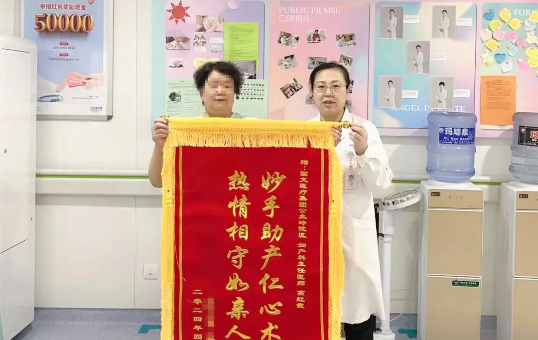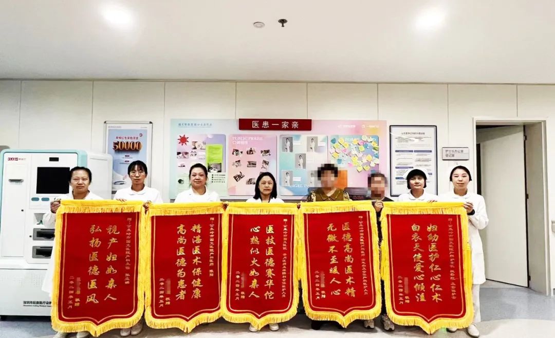 王女士生命體征平穩(wěn)安返病房,經過產科團隊7天的精心護理,王女士恢復很好,在出院之際,王女士和家人為產科多名醫(yī)護,送上鮮紅熾熱的錦旗,以表達對國文醫(yī)院及醫(yī)護人員的真誠感謝。
