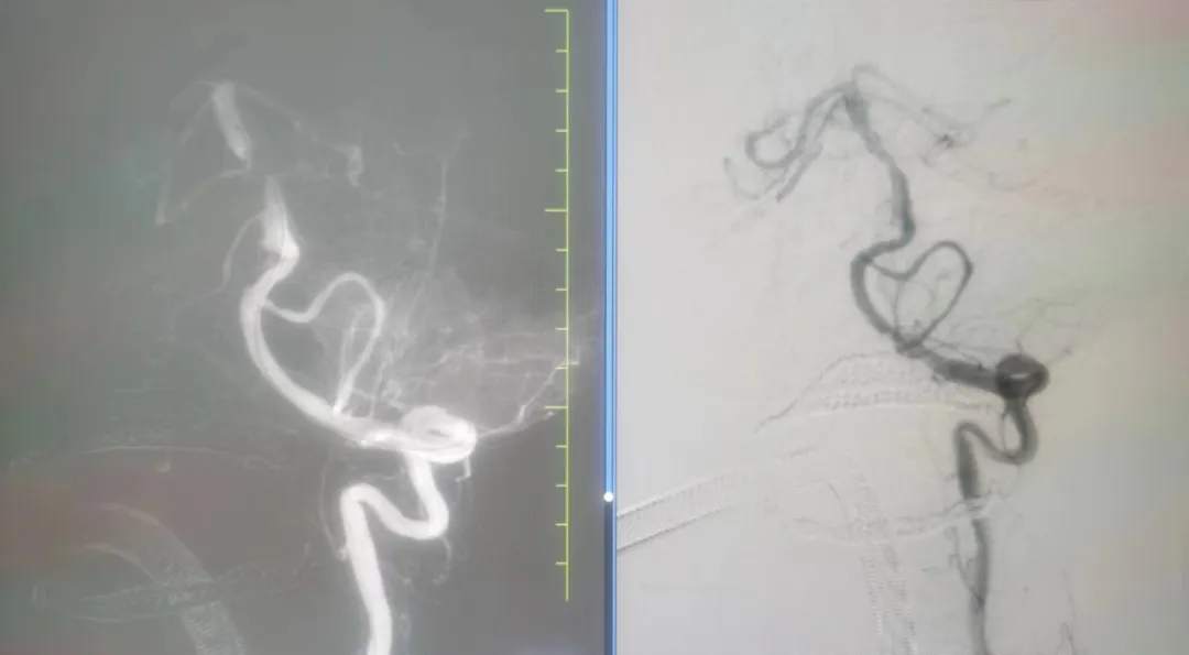 70歲的劉阿姨(化名)家住伊通縣,三天前劉阿姨在家中突發(fā)右側(cè)肢體活動(dòng)不靈,言語笨拙,被家人直接送往我院。入院后,神經(jīng)介入科丁金明主任、朱洪波副主任第一時(shí)間查看患者并為其安排完善檢查,經(jīng)頭部核磁檢查提示:基底動(dòng)脈狹窄程度竟達(dá)到了95%,該血管一旦發(fā)生急性閉塞,將危及患者生命,情況十分危急,需要立即手術(shù)。要知道基底動(dòng)脈重度狹窄為急性腦缺血的根本原因,狹窄處隨時(shí)可能因?yàn)樾庐a(chǎn)生的血栓而導(dǎo)致血管急性閉塞,一旦基底動(dòng)脈完全閉塞,則會危及患者生命,具有高致死率及高致殘率。目前最有效的治療方式是血管內(nèi)介入治療即基底動(dòng)脈狹窄球囊擴(kuò)張術(shù)。在與患者家屬充分溝通并征得同意后,醫(yī)護(hù)人員迅速將劉阿姨送入導(dǎo)管室,在丁金明主任帶領(lǐng)下神經(jīng)介入科團(tuán)隊(duì)為患者股動(dòng)脈行穿刺,通過DSA(腦血管造影)精準(zhǔn)鎖定到病變血管基底動(dòng)脈狹窄處,以球囊完成擴(kuò)張,狹窄處血流明顯改善。術(shù)后造影顯示狹窄段血管擴(kuò)張滿意,患者狀態(tài)良好,言語笨拙和右側(cè)肢體活動(dòng)不利癥狀得到改善,降低了患者腦血管病復(fù)發(fā)的幾率,有效的改善患者預(yù)后!目前,國文醫(yī)院神經(jīng)介入科在該領(lǐng)域的治療能力已達(dá)省內(nèi)先進(jìn)水平。國文醫(yī)院神經(jīng)介入科長期開展全腦血管造影、腦血管支架植入術(shù)等神經(jīng)介入治療,為廣大腦血管病患者開辟了新的檢查治療途徑,國文始終秉承“快速、精準(zhǔn)、微創(chuàng)”的救治理念,使省內(nèi)腦血管病患者得到最及時(shí)有效的診治。