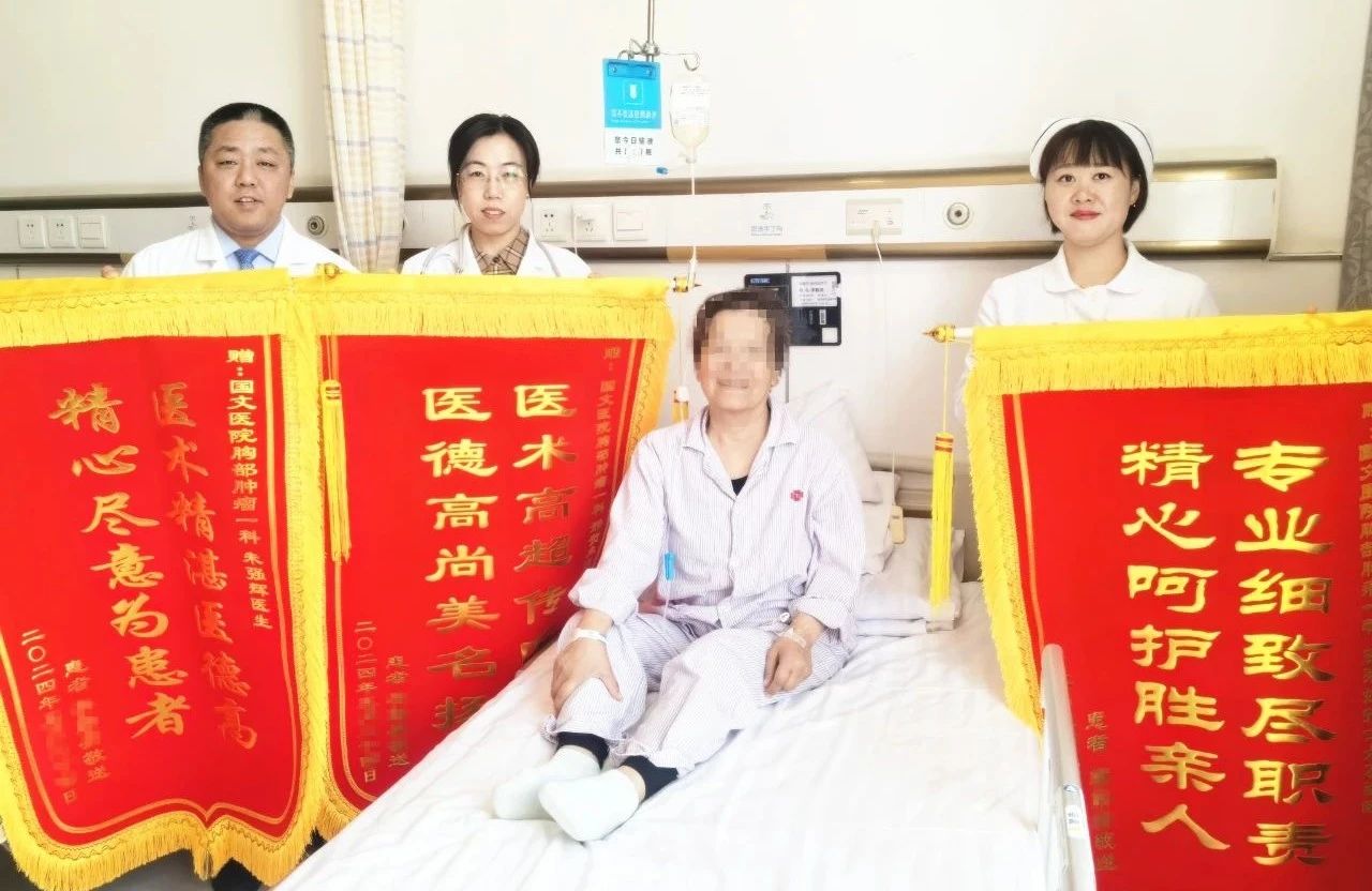 說起在國文醫(yī)院治療的這段日子,李阿姨激動的心情溢于言表,為此她特別送上三面錦旗,分別贈與邢主任、王護士長以及主治醫(yī)師朱醫(yī)生,以表達她心中深深地感激。她笑著說道:現在我恢復很好,出院后我又能去參加秧歌隊的活動了,在國文醫(yī)院住院有家一般的溫暖,感謝你們。