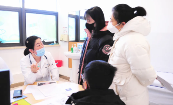 活動(dòng)現(xiàn)場(chǎng),氣氛熱烈而有序,家長(zhǎng)與孩子們?cè)诤蛟\區(qū)耐心等候。醫(yī)護(hù)人員為孩子們進(jìn)行身高、體重、骨齡檢測(cè)。國(guó)文醫(yī)院兒科金英副主任帶領(lǐng)兒科團(tuán)隊(duì)為前來(lái)參加骨齡檢測(cè)的兒童家長(zhǎng)詳細(xì)解讀檢查報(bào)告。