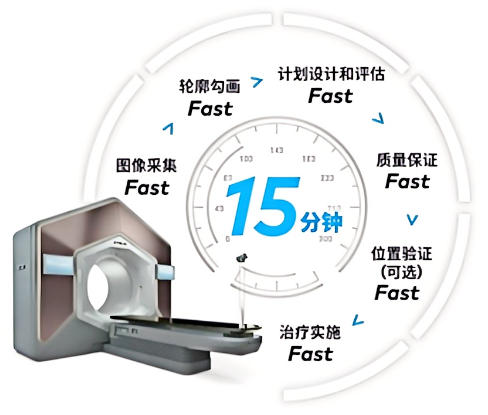 與常規(guī)直線加速器相比,Ethos通過集成人工智能、軟硬一體化平臺等全要素技術(shù)創(chuàng)新與整合,在放療的每個分次,實(shí)現(xiàn)所有關(guān)鍵步驟的“6個快”:快速成像-快速勾畫-快速計劃-快速質(zhì)控-快速驗(yàn)證-快速施照。在每次治療前,根據(jù)患者當(dāng)次治療的高清晰度iCBCT影像對所治療的腫瘤靶區(qū)在每日治療過程中的變化,通過AI智能化評估、自動調(diào)整并重新計算當(dāng)日照射劑量,整個過程只需要15分鐘就能完成,而在此之前,常規(guī)放療方式此流程至少需要2~3天時間。省去了以往患者療前繁瑣的準(zhǔn)備流程,將工作效率和治療能力提升到一個全新的高度,為腫瘤患者的治療贏得了更多寶貴時機(jī)。