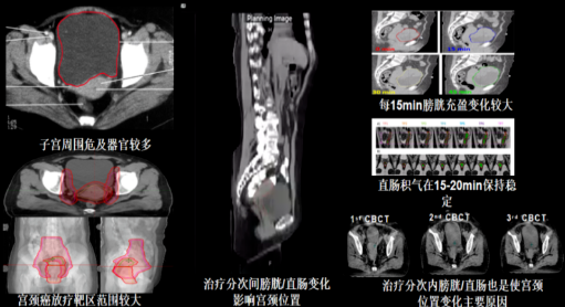 以宮頸癌為例,由于宮頸癌的放療靶區(qū)較長、周圍危及器官涉及較多、腫瘤的位置常受到膀胱充盈及腸道積氣等多重因素影響而變動,既往放療主要通過增大外放邊界來解決不同治療分次間腫瘤位置發(fā)生較大變化的問題,但這樣做同時也會增加膀胱、腸道等正常組織劑量,而導(dǎo)致放療后出現(xiàn)腹瀉、尿路刺激癥狀等情況。