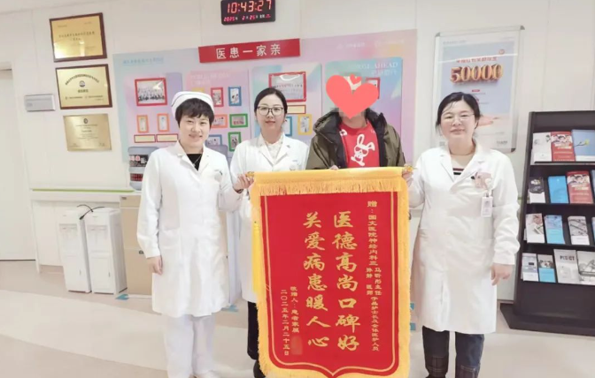 幸運的是,送醫(yī)及時,醫(yī)生迅速采取了有效的治療措施。經(jīng)過全力救治,黃大爺?shù)牟∏橹饾u好轉(zhuǎn)。從一開始左胳膊根本抬不起來,到后來能夠順利舉過頭頂,從走路搖搖晃晃、不穩(wěn)當,到最終恢復正常行走。這一系列的變化,讓黃大爺和家人感激萬分。為此,黃大爺一家在出院之際,為特別感謝神經(jīng)內(nèi)科三療區(qū)全體醫(yī)護人員的精心治療和護理,特送來一面錦旗以表達他們心中說不盡的感謝。