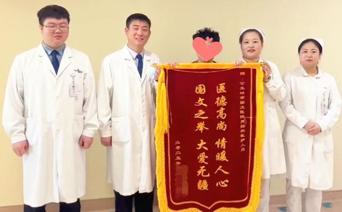 經(jīng)過一段時間精心調(diào)理,祝先生如期出院。出院當日,祝先生與家人手捧錦旗,懷著滿滿的感激之情,鄭重地將錦旗送到肝膽胰胃腸外科王得勝主任團隊手中。錦旗上熠熠生輝的文字,既是對團隊精湛醫(yī)術(shù)的由衷贊嘆,更是醫(yī)患之間以生命相托、以真心相付的溫暖注腳。