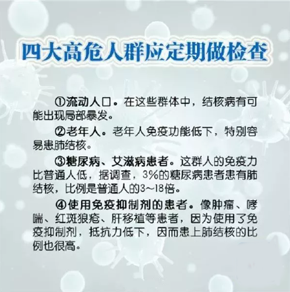 任何人一旦出現(xiàn)“肺結(jié)核的可疑癥狀”,就應(yīng)當(dāng)立即到疾控中心或結(jié)核病防治機(jī)構(gòu)就診檢查。