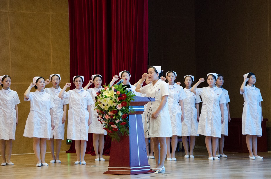 護(hù)士長(zhǎng)李瑞華帶領(lǐng)護(hù)士宣讀南丁格爾誓言