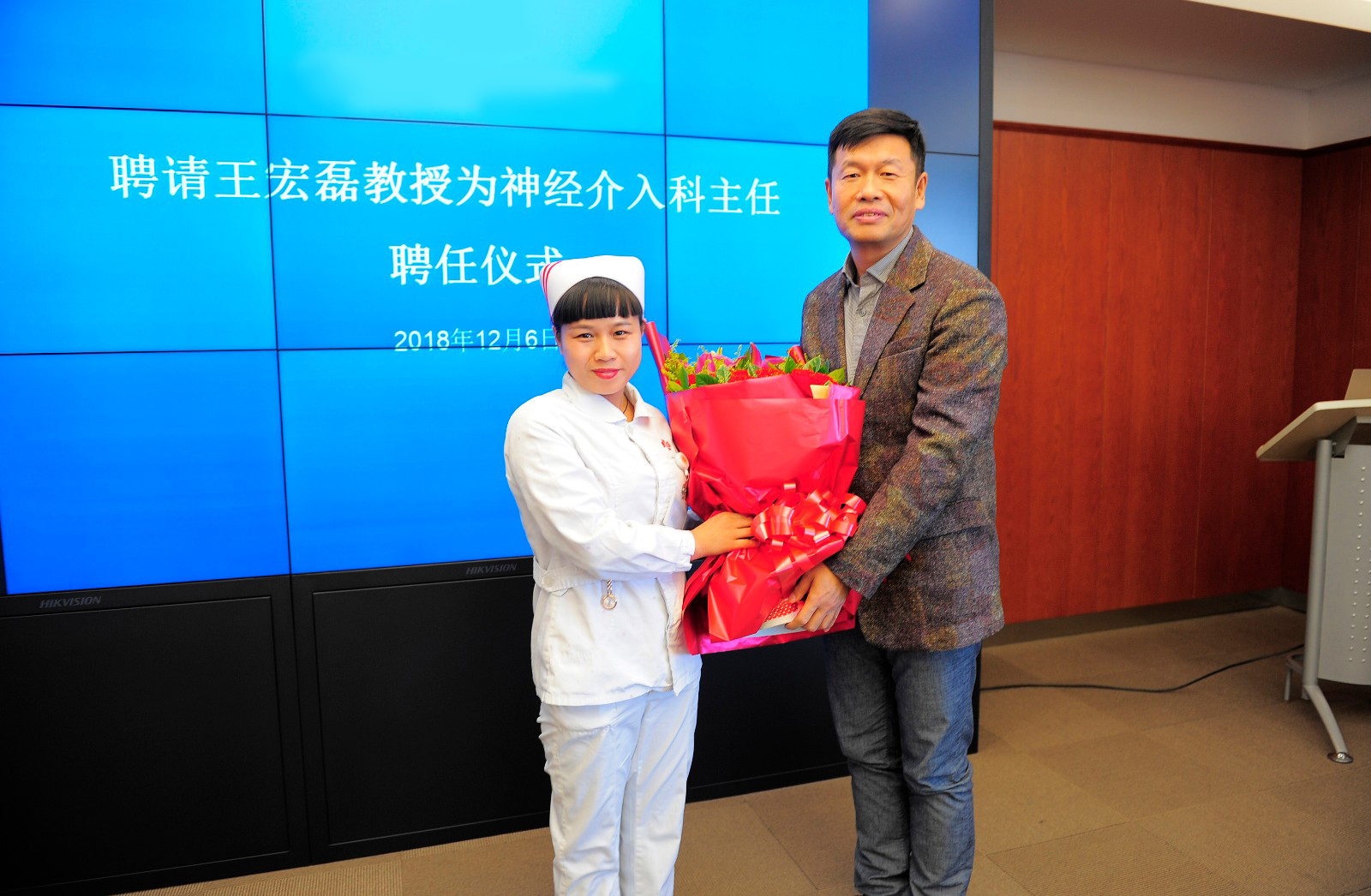 聘任儀式由黨辦主任李宜森主持,呂國(guó)旗院長(zhǎng)發(fā)表講話,誠(chéng)摯歡迎王宏磊教授加入國(guó)文醫(yī)院這個(gè)大家庭,同時(shí)對(duì)王教授取得的成就表示欽佩。隨后呂國(guó)旗院長(zhǎng)親自為王教授頒發(fā)聘任證書(shū),護(hù)士長(zhǎng)孫艷華代表科室送上鮮花,祝賀王教授任職神經(jīng)介入科主任。