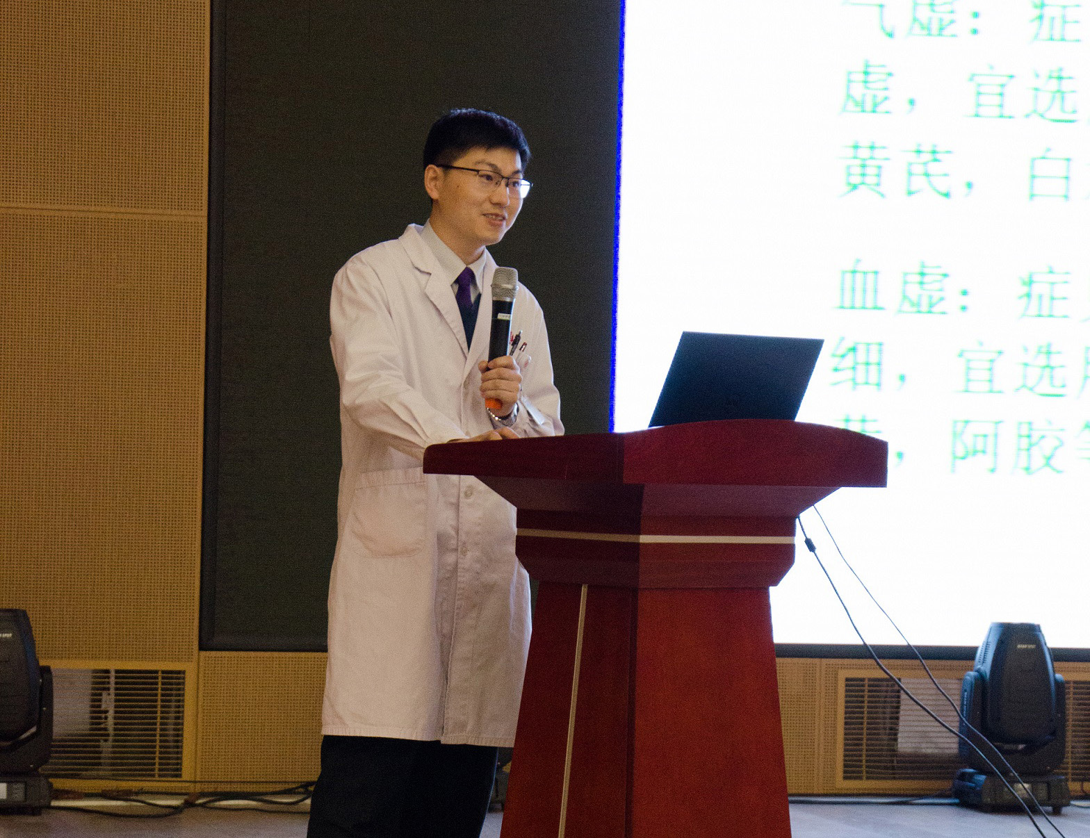 按照會議議程,為貫徹落實中醫(yī)藥法、推進我院中醫(yī)藥事業(yè)發(fā)展,首先由中醫(yī)青年專家宋寬躍給全體醫(yī)師普及和培訓(xùn)了中醫(yī)藥在腫瘤治療中的地位,宋寬躍說“在當(dāng)前的惡性腫瘤治療中,中醫(yī)中藥的地位和作用越來越重要。在惡性腫瘤治療的全過程,中醫(yī)中藥都在發(fā)揮著作用,其療效是肯定的,切切實實的。中醫(yī)學(xué)則認(rèn)為惡性腫瘤是全身疾病的局部表現(xiàn),通過調(diào)整機體的陰陽臟腑氣血平衡,達(dá)到扶助正氣、抑制癌瘤的目的,延緩甚至阻止癌瘤的發(fā)展,特別適宜于中晚期惡性腫瘤、及老年體弱不適宜手術(shù)的癌瘤患者。