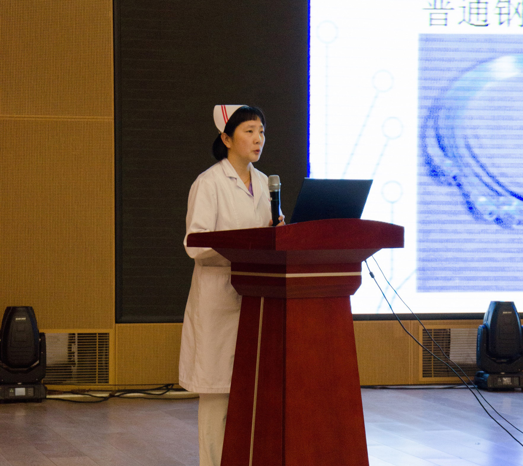 會議議程第二項由護理部副主任鄭黎明給全體醫(yī)師講解了PICC置管對腫瘤患者在化療中的作用,鄭黎明說“PICC應(yīng)用于腫瘤化療中穿刺成功率高、留置時間長、無嚴(yán)重并發(fā)癥發(fā)生,一次置管后可完成4~6個療程的化療,減輕了患者因反復(fù)穿刺的痛苦,減少醫(yī)療費用,可作為腫瘤長期化療患者的首選,大大提高了腫瘤患者生存質(zhì)量。