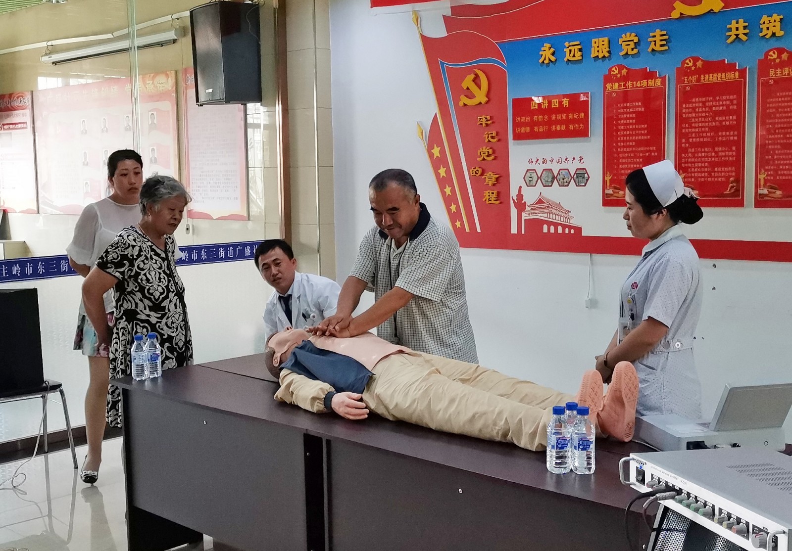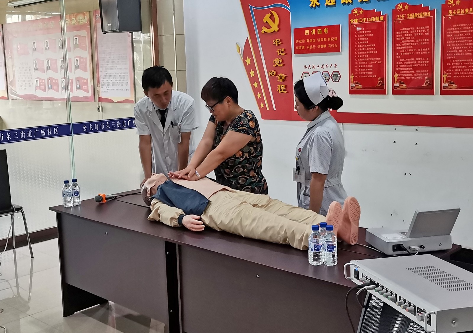 從這樣的角度看,公眾心肺復(fù)蘇普及程度代表了一個國家的先進(jìn)和文明程度,現(xiàn)實意義深遠(yuǎn)而重大。為此吉林國文醫(yī)院黨委發(fā)起醫(yī)務(wù)處承辦的心肺復(fù)蘇公益推廣項目,認(rèn)真切實的為公主嶺市東三街道廣盛社區(qū)的居民們普及了心肺復(fù)蘇急救知識。由我院理論知識豐富,技術(shù)精湛的醫(yī)療人員,認(rèn)真切實的為廣盛社區(qū)90余名社區(qū)居民進(jìn)行急救知識培訓(xùn),以及應(yīng)急知識教育。